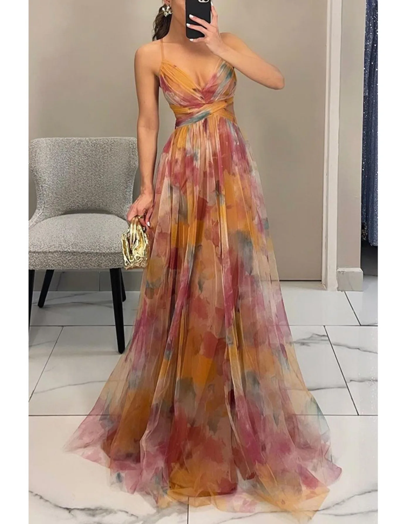 Be the first to review “American Spring/Summer Mesh Printed Sling Dress”