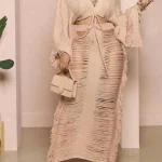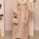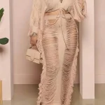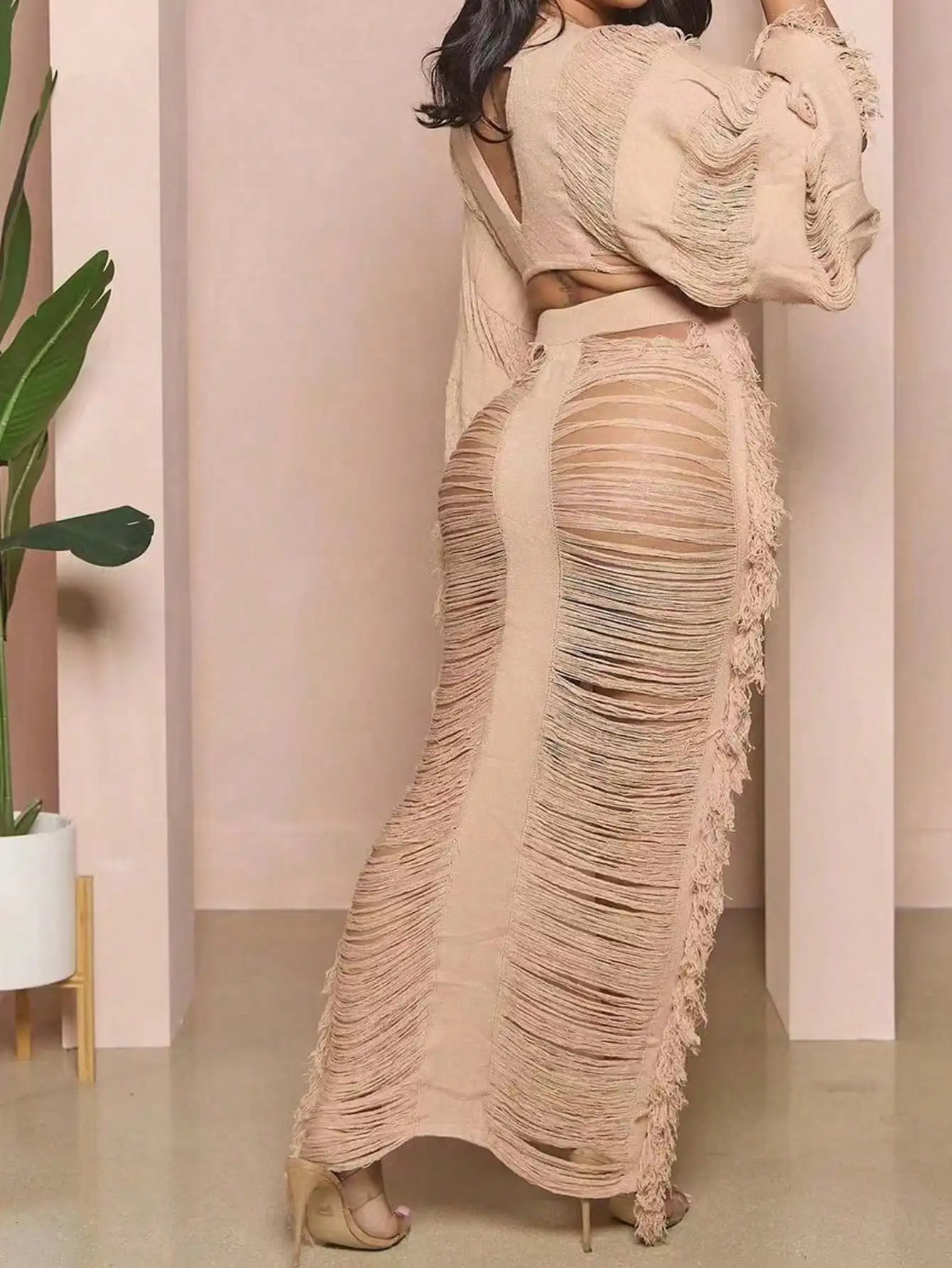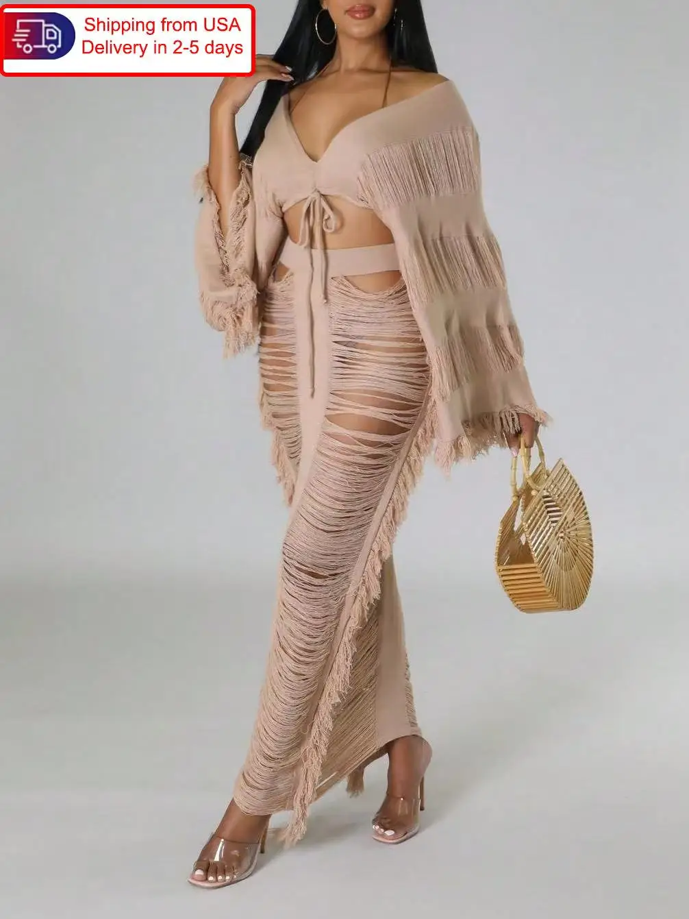 TASSEL DESIGN:The long skirt and long sleeve top both have hollow out designs, adding a sense of mystery and a sexy atmosphere, allowing your body to be better displayed.Long sleeve top with v-neck style and loose long sleeves with a strong sense of design. Overall, it appears unique.