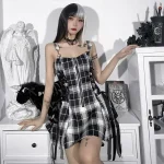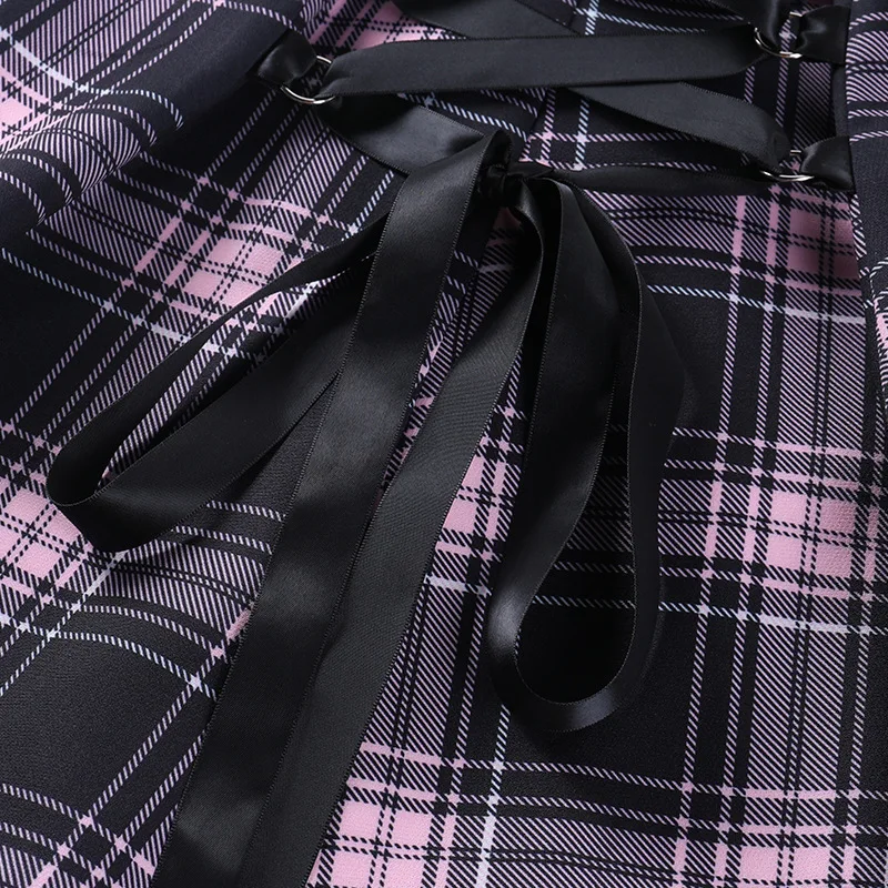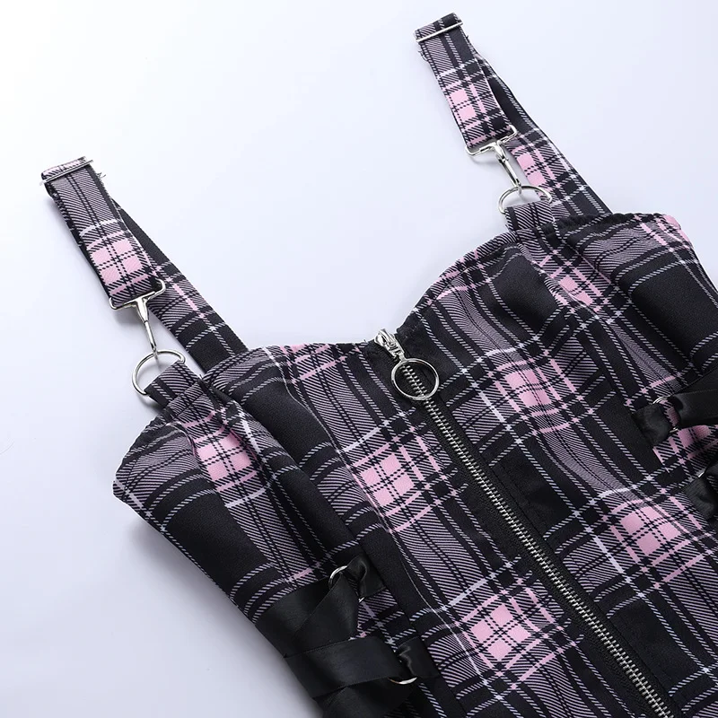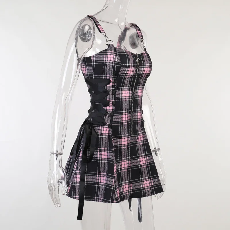 Feature: Plaid, Lace-up, Zipper, Backless, Sleeveless